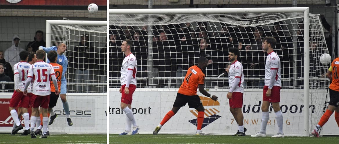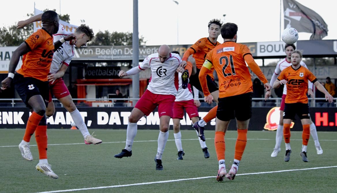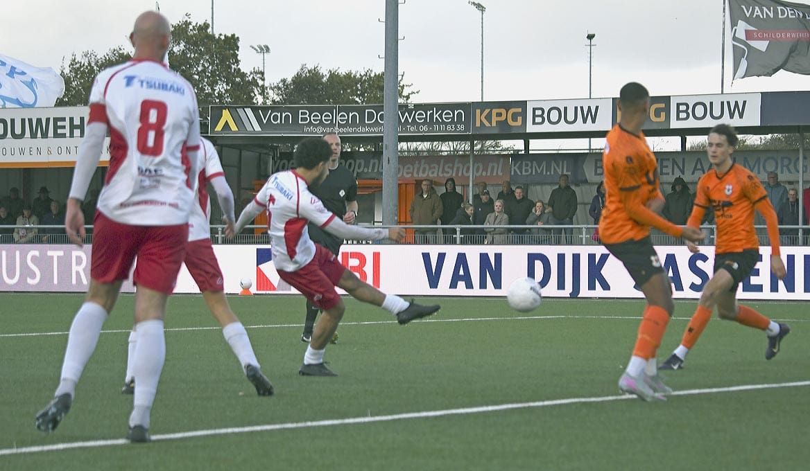 Zou Barendrecht nu dan kunnen doorpakken? Joey Jongman kreeg een vrije trap op een meter of twintig van het doel. Zijn inzet werd door de Katwijk-keeper gered. Op het moment dat de Barendrecht-volgers rekenden op een treffer, viel die aan de overkant. Uit een hoekschop frommelde Levi Bouwense de bal tegen de touwen, 4-3. De zoveelste dreun voor de rood/witten deze middag.