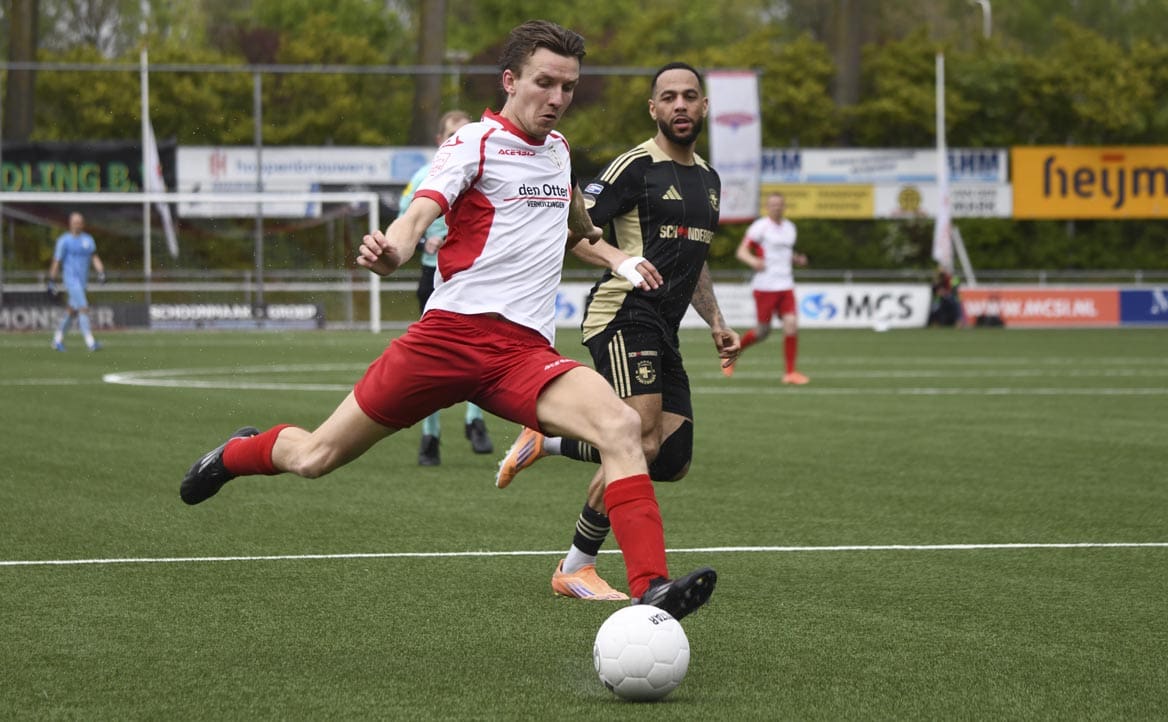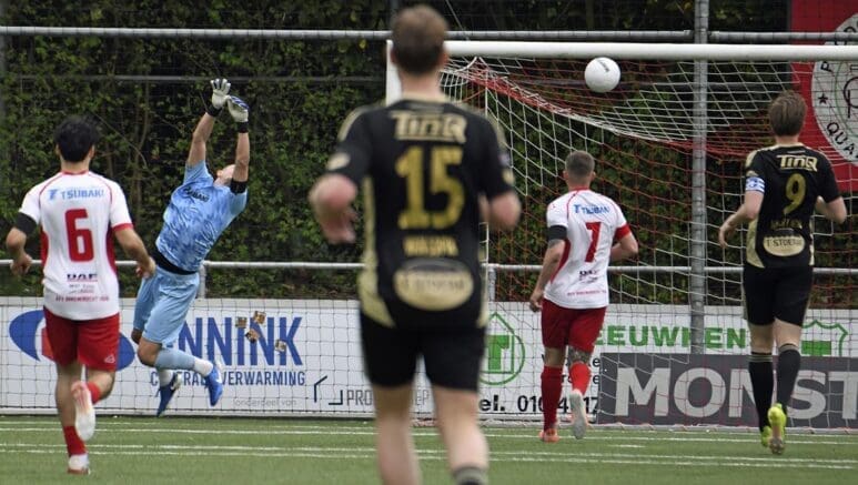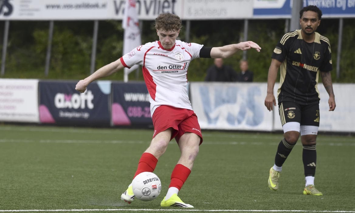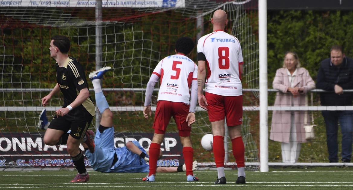 En er kwamen mogelijkheden, zoals voor Brent Vugts die hard en hoog inschoot maar Houweling toch zag redden. Aan de overkant liet Spakenburg zien hoe je afwerkt, verdediger Olaf Kok tikte van dichtbij de 0-3 binnen. Daarmee zat het duel in het slot.