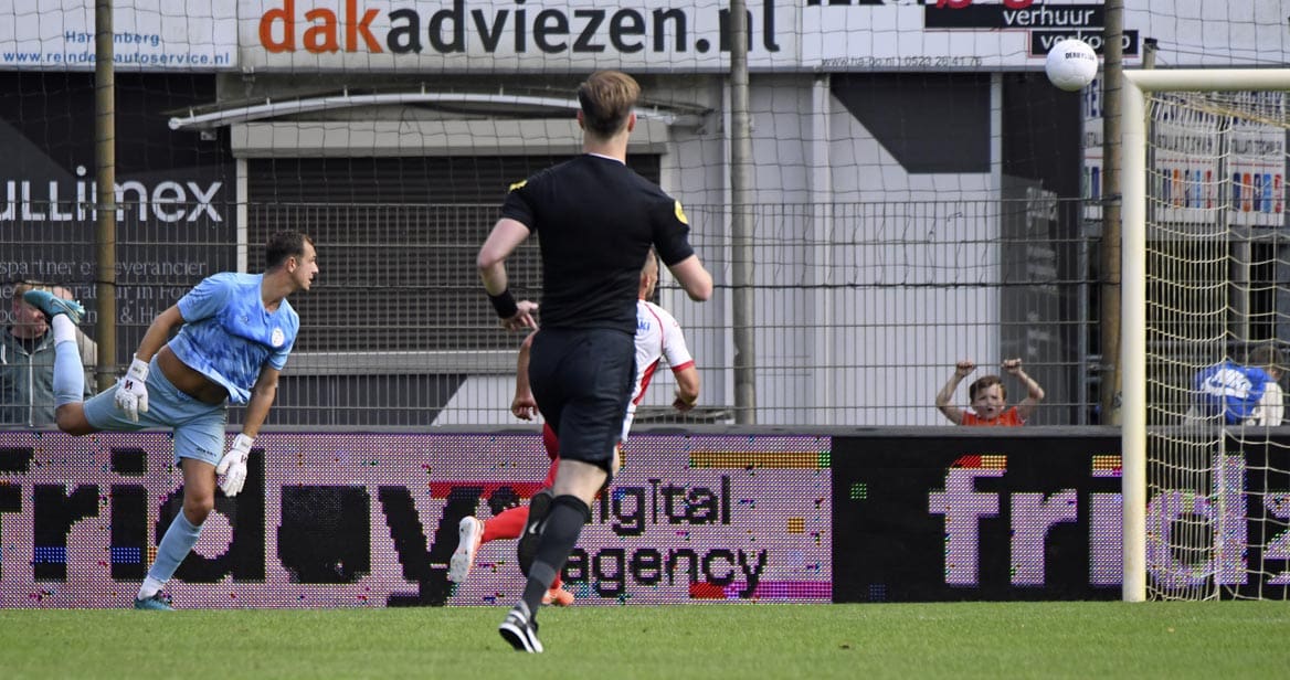 Het begin was dramatisch. Al na vijf minuten kwam HHC Hardenberg op voorsprong. Jens Schraven krulde de bal vanaf rechts met links in de verste hoek, 1-0. Er kwamen meer kansen voor de thuisploeg, maar spits Giovanni Zwikstra kopte van dichtbij naast.