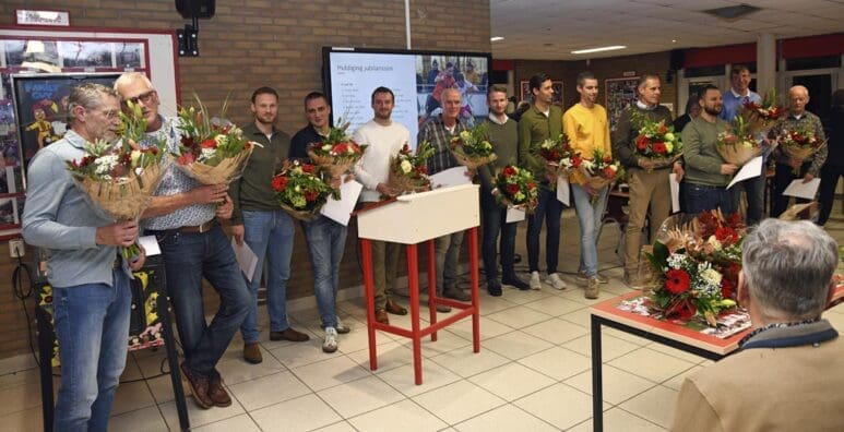 De beurt was daarna aan de jubilarissen die al 50 jaar lid zijn van de club. De broers Arend en Dick van Oosten en de leden van verdienste Leon Roos en Marcel van der Waarde werden met mooie woorden toegesproken en onder luid applaus gehuldigd.